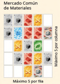 - Colocar una carta de material en el mercado y tomar dos cartas de cartas de cualquier tipo.